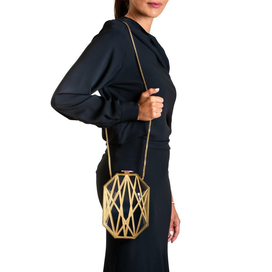 NS by Noof explores the intrinsic relationship between the spirit of architecture and the art of jewellery; In a collection of hand-crafted handbags and clutches. Each piece is embellished with a kaleidoscopic of semipreciousgemstones which boosts energy and augments wellbeing.